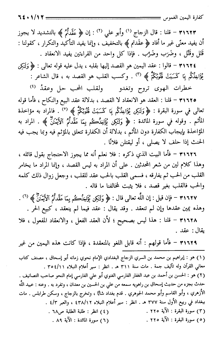 31624 - قالوا: عقد اليمين هو القصد إليها بقلبه، يدل عليه قوله تعالى: {ولكن يؤاخذكم بما كسبت قلوبكم}. وكسب القلب هو القصد به، قال الشاعر: