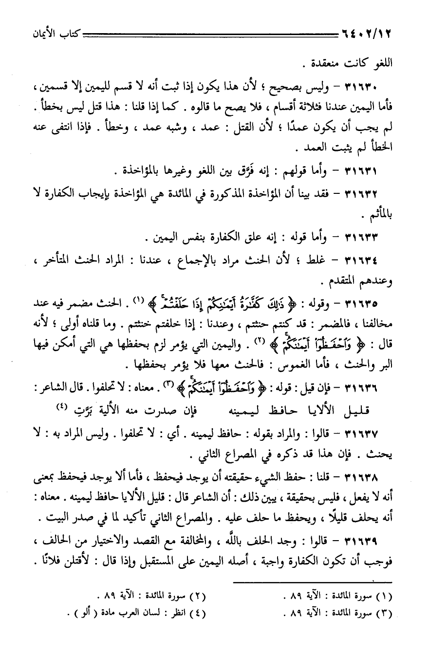 31631 - وأما قولهم: إنه فرق بين اللغو وغيرها بالمؤاخذة.