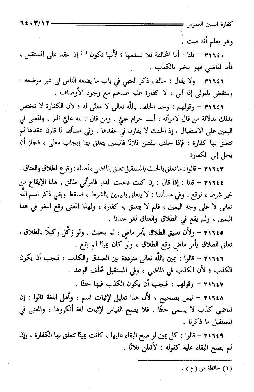 31647 - وقولهم: فيجب أن يكون الكذب فيها حنثًا.