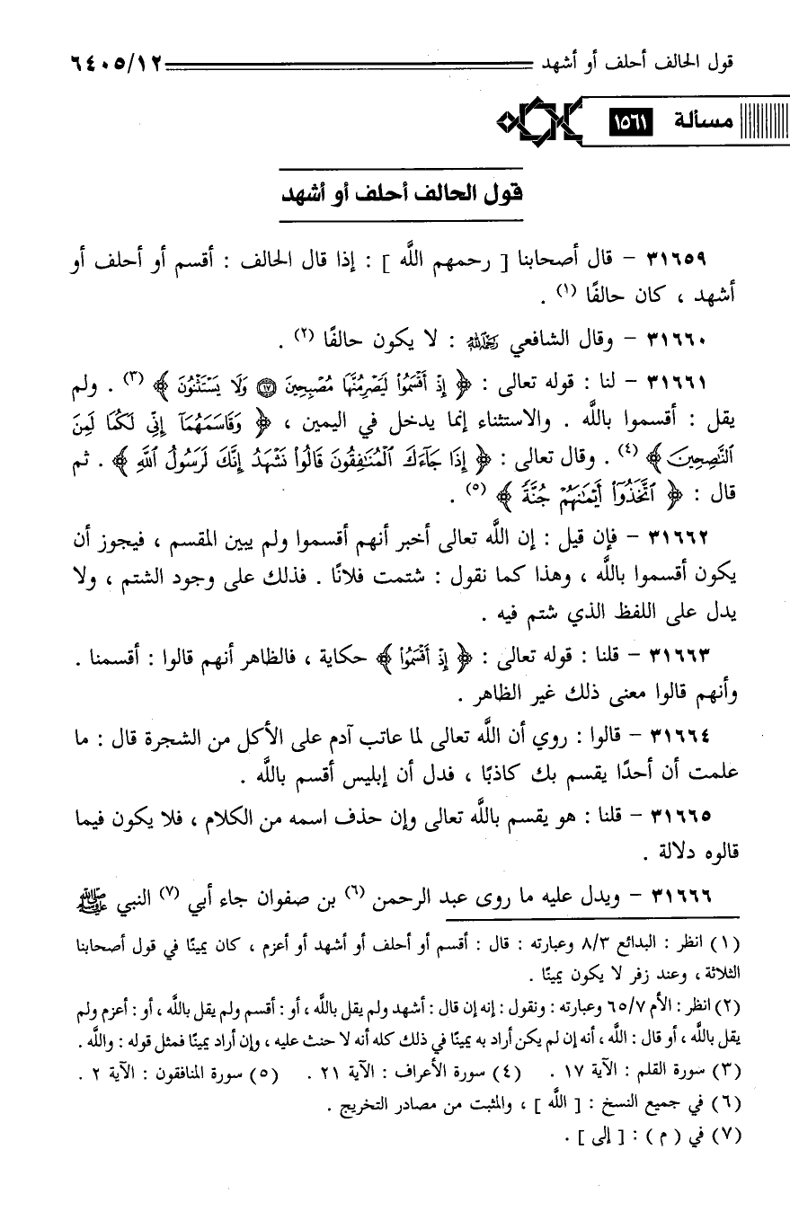 31659 - قال أصحابنا [رحمهم الله]: إذا قال الحالف: أقسم أو أحلف أو أشهد، كان حالفًا.