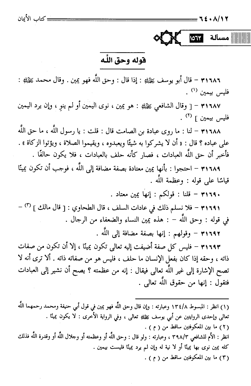 31686 - قال أبو يوسف، رحمه الله: إذا قال: وحق الله فهو يمين. وقال محمد رحمه الله. فليس ييمين.