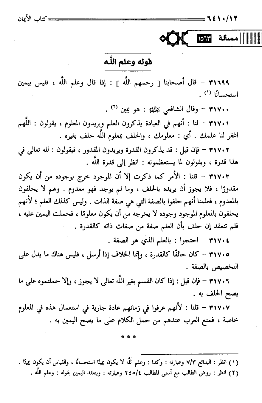 31699 - قال أصحابنا [رحمهم الله]: إذا قال وعلم الله، فليس بيمين استحسانًا.