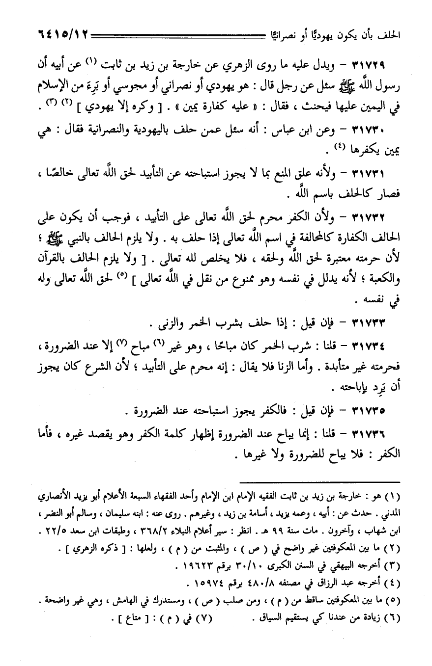 31730 - وعن ابن عباس: أنه سئل عمن حلف باليهودية والنصرانية فقال: هي يمين يكفرها.