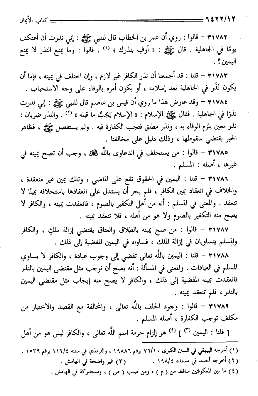 31789 - قالوا: وجود الحلف بالله تعالى، والمحالفة مع القصد والاختيار من مكلف توجب الكفارة، أصله المسلم.