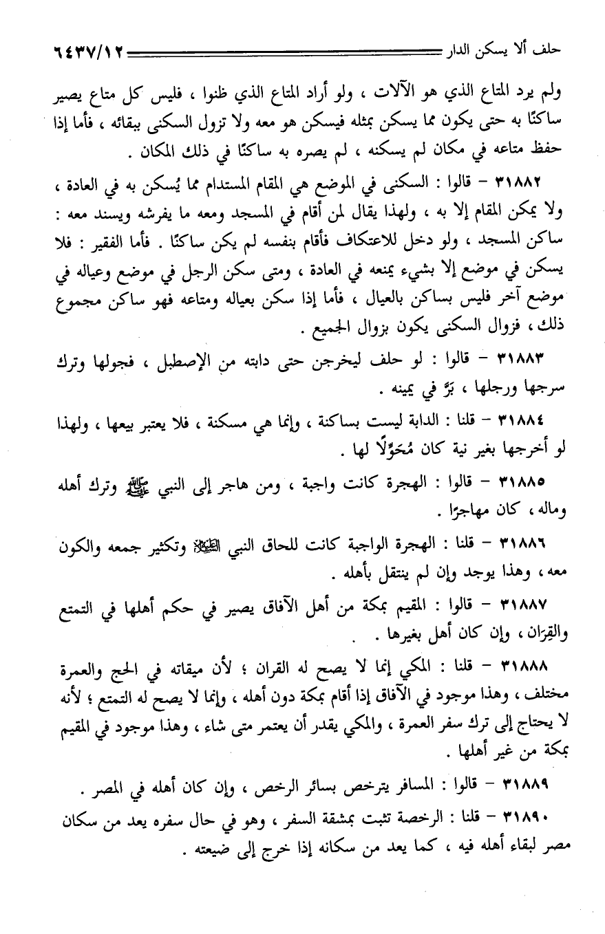 31885 - قالوا: الهجرة كانت واجبة، ومن هاجر إلى النبي - صلى الله عليه وسلم - وترك أهله وماله، كان مهاجرًا.