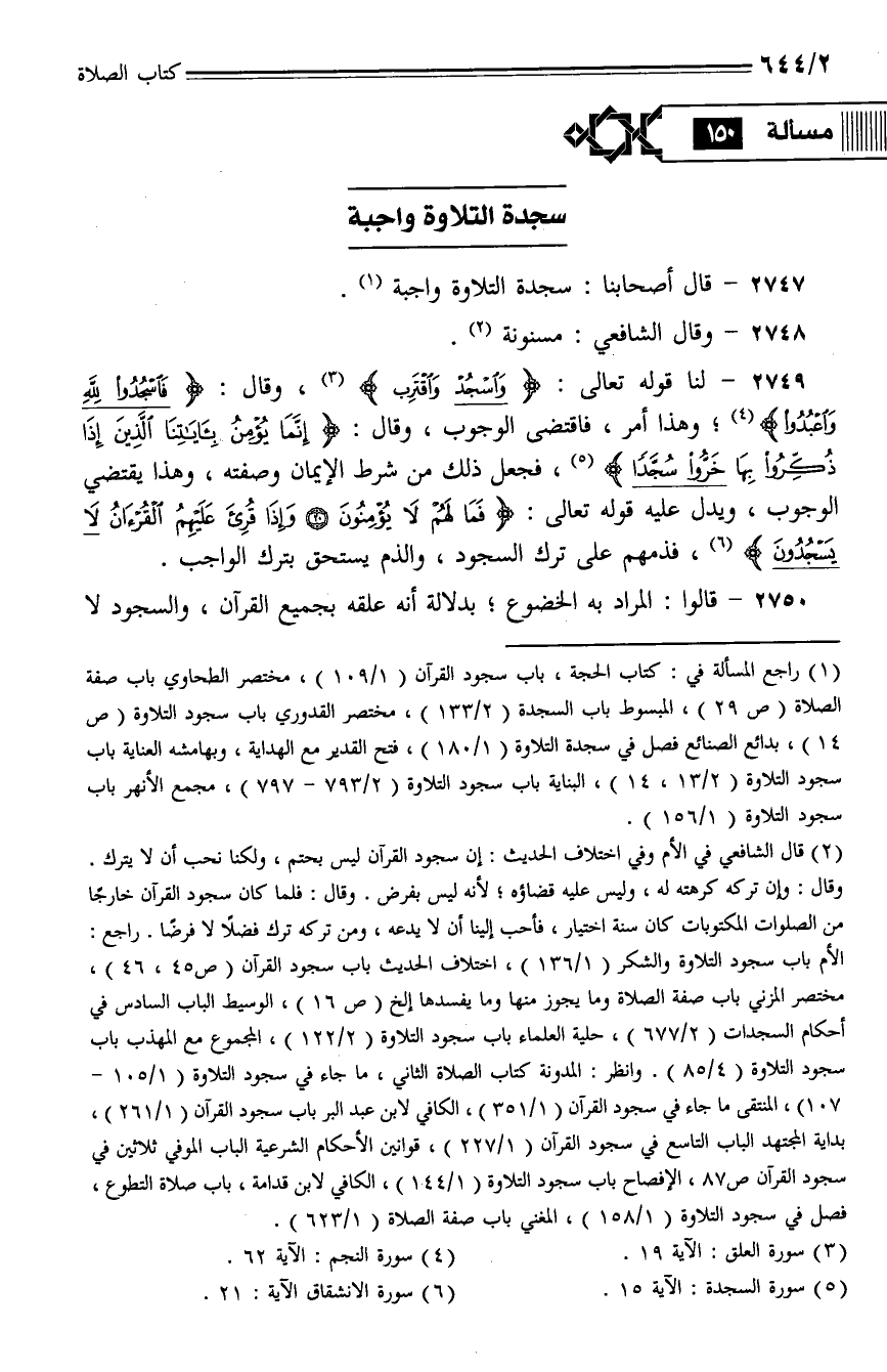 2747 - قال أصحابنا: سجدة التلاوة واجبة.
