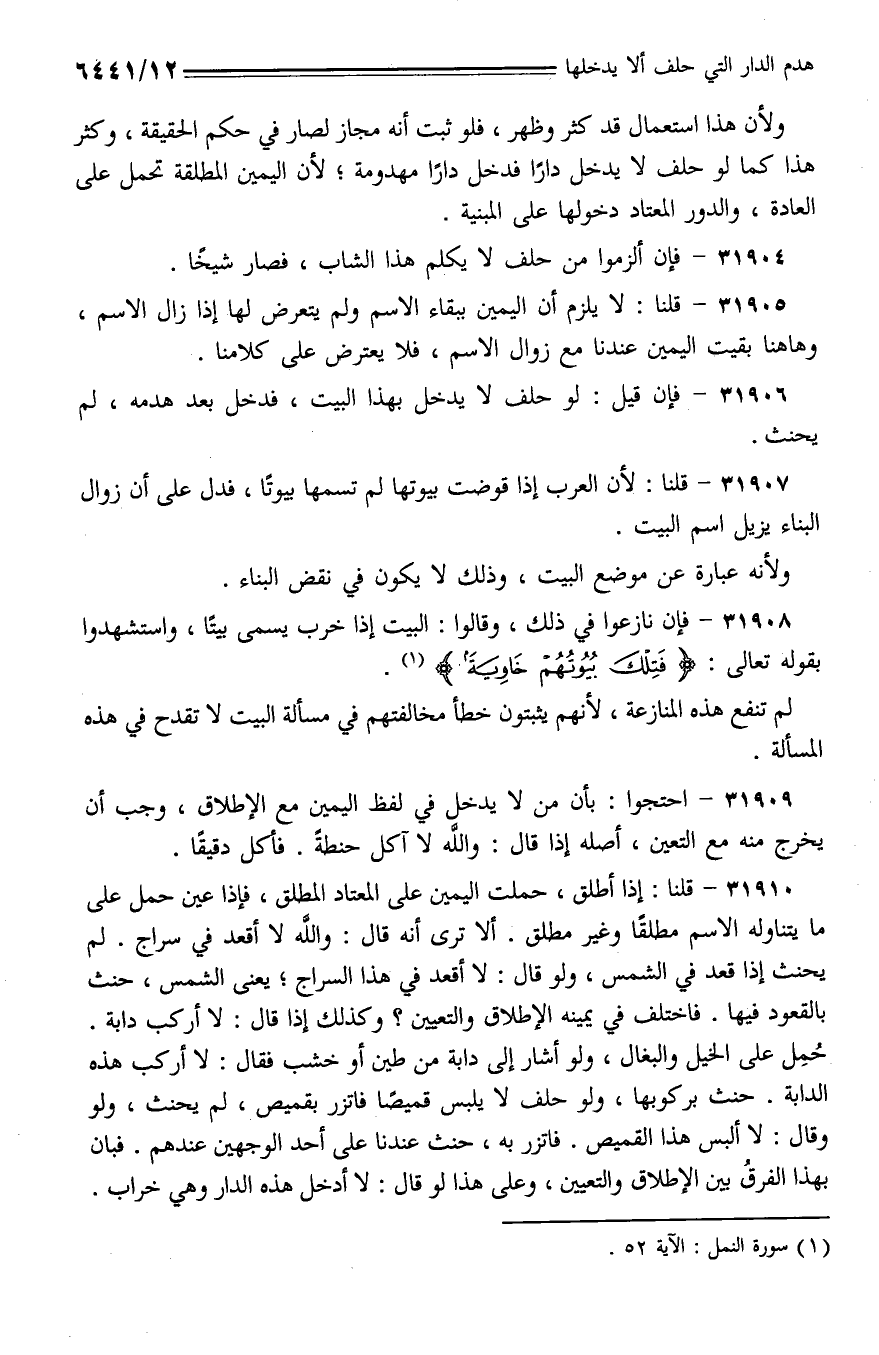 31905 - قلنا: لا يلزم أن اليمين ببقاء الاسم ولم يعترض لها إذا زال الاسم، وهاهنا بقيت اليمين عندنا مع زوال الاسم، فلا يعترض على كلامنا.