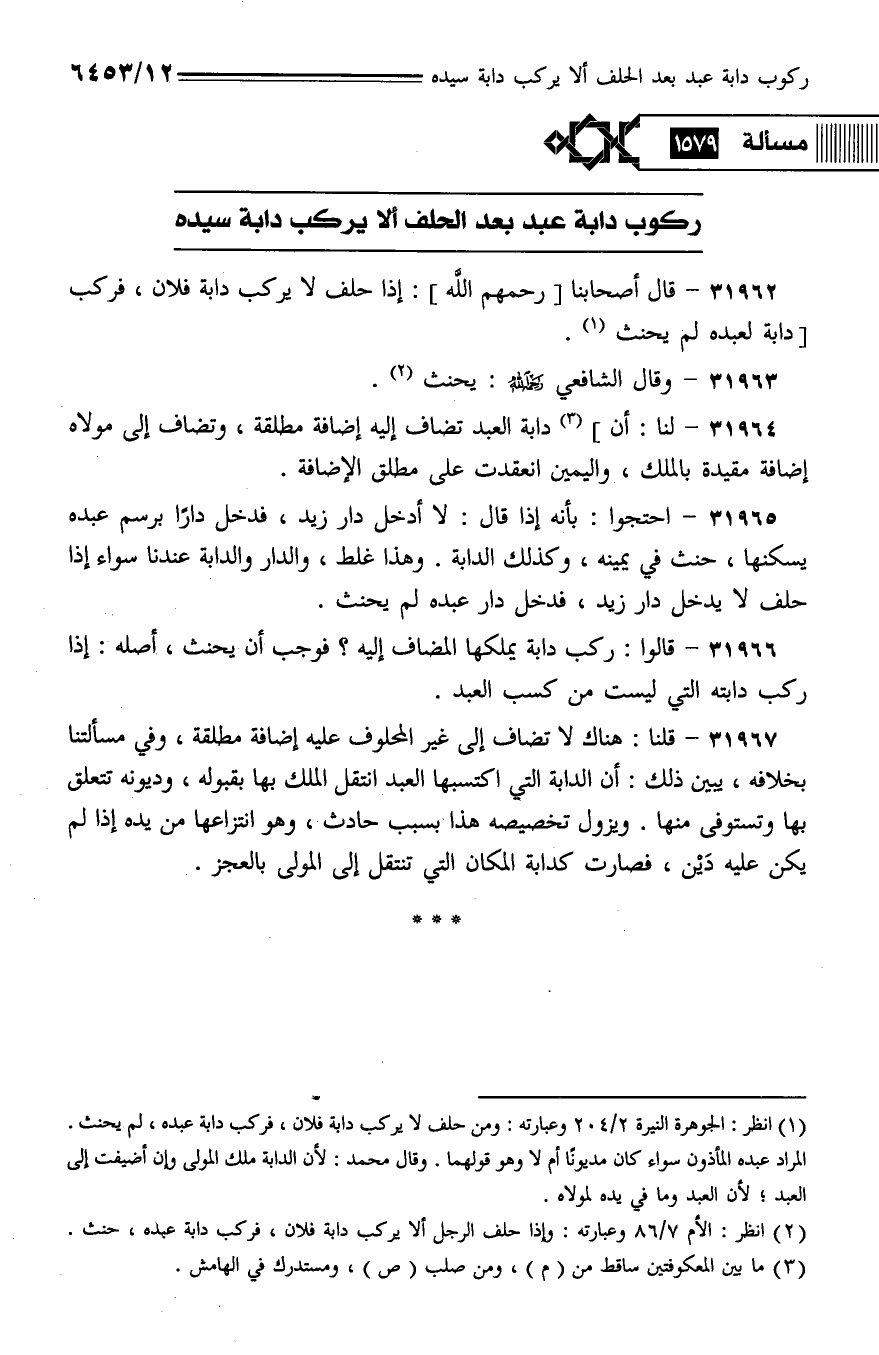 31965 - احتجوا: بأنه إذا قال: لا أدخل دار زيد، فدخل دارًا برسم عبده يسكنها، حنث في يمينه، وكذلك الدابة. وهذا غلط، والدار والدابة عندنا سواء إذا حلف لا يدخل دار زيد، فدخل دار عبده لم يحنث.