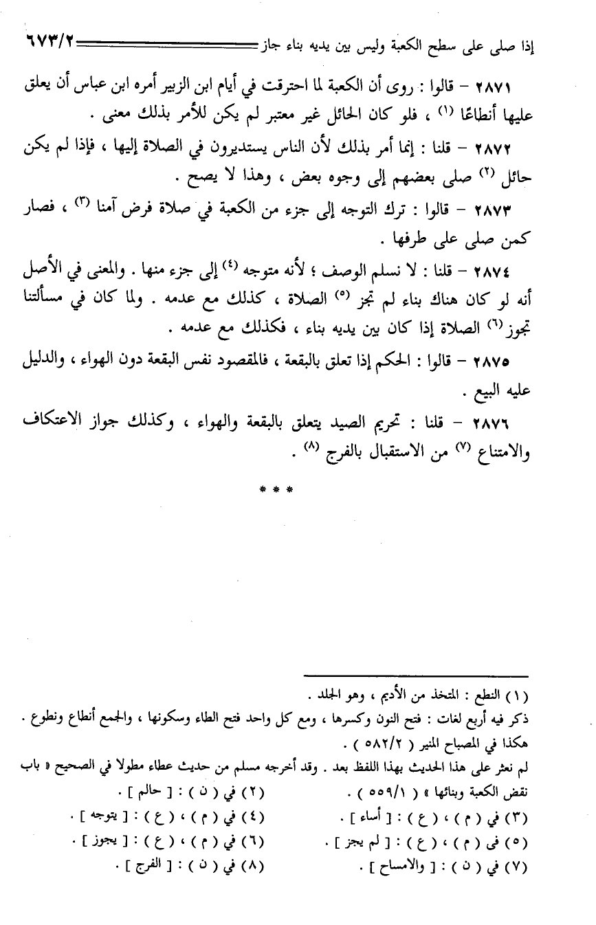 2873 - قالوا: ترك التوجه إلى جزء من الكعبة في صلاة فرض آمنا، فصار كمن صلى على طرفها.
