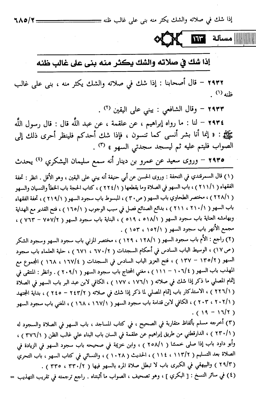 2934 - لنا: ما رواه إبراهيم، عن علقمة، عن عبد الله قال: قال رسول الله - صلى الله عليه وسلم -: (إنما أنا بشر أنسى كما تنسون، فإذا شك أحدكم فلينظر أحرى ذلك إلى الصواب فليتم عليه ثم ليسجد سجدتي السهو).