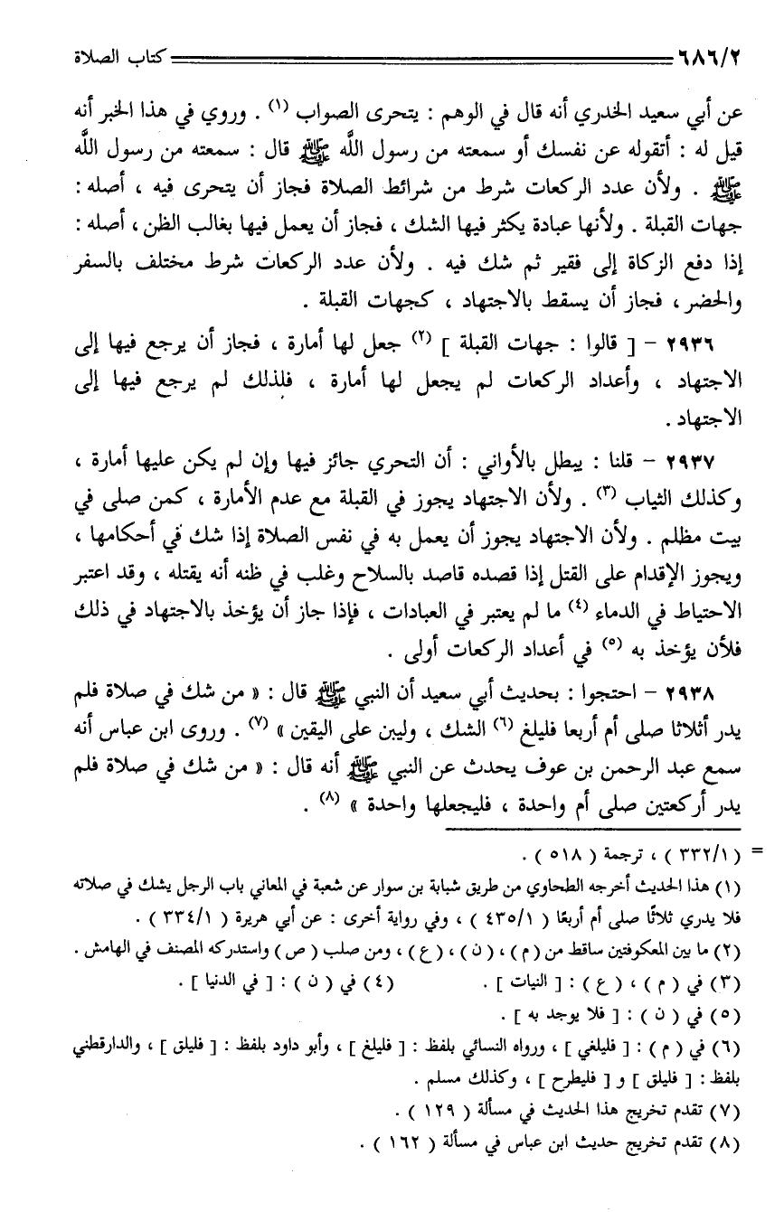 2936 - [قالوا: جهات القبلة] جعل لها أمارة، فجاز أن يرجع فيها إلى الاجتهاد وأعداد الركعات لم يجعل لها أمارة، فلذلك لم يرجع فيها إلى الاجتهاد.