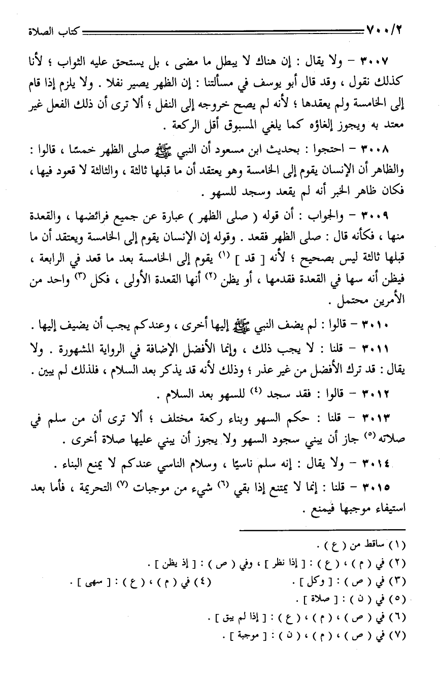 3013 - قلنا: حكم السهو وبناء ركعة مختلف؛ ألا ترى أن من سلم في صلاته جاز أن يبني سجود السهو ولا يجوز أن يبني عليها صلاة أخرى.