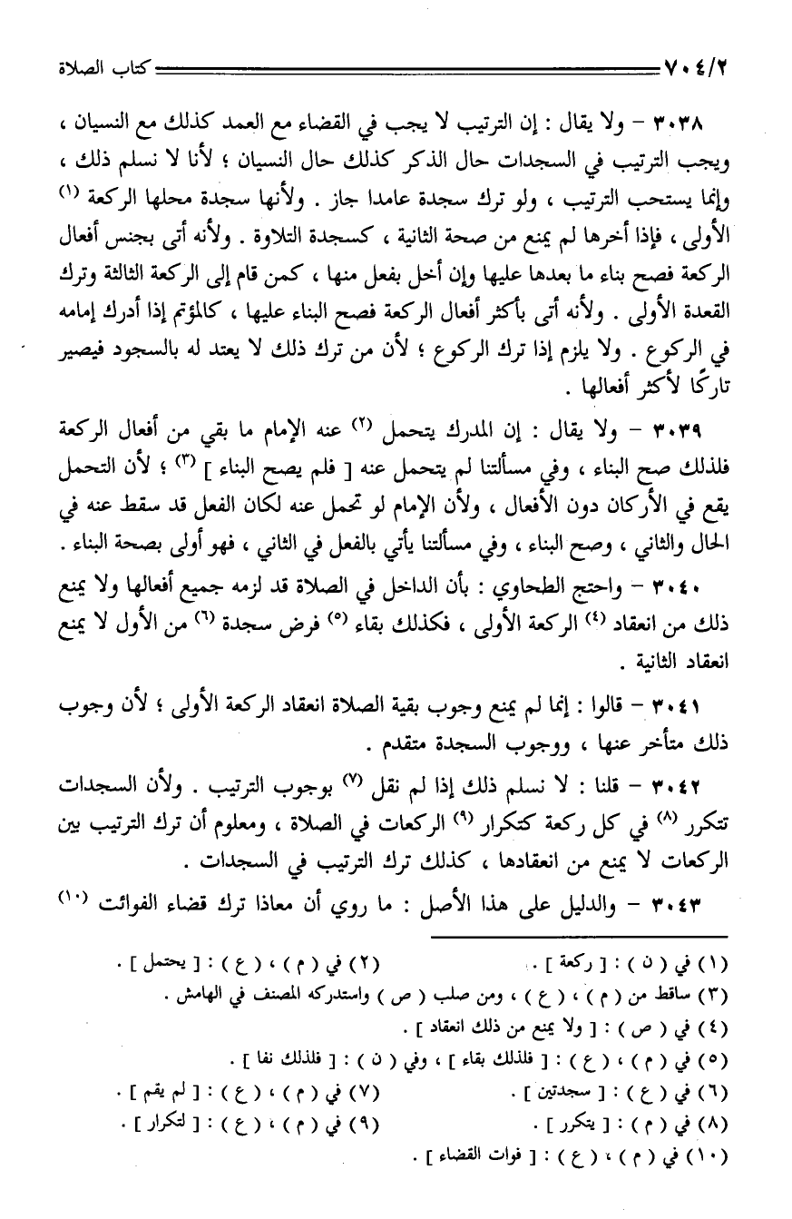 3042 - قلنا: لا نسلم ذلك إذا لم نقل بوجوب الترتيب. ولأن السجدات تتكرر في كل ركعة كتكرار الركعات في الصلاة، ومعلوم أن ترك الترتيب بين الركعات لا يمنع من انعقادها، كذلك ترك الترتيب في السجدات
