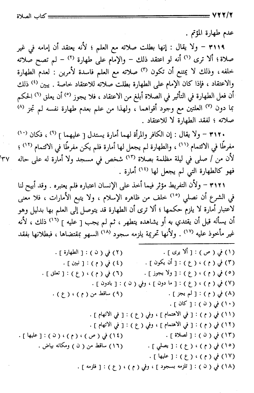 3120 - ولا يقال: إن الكافر والمرأة لهما أمارة يستدل [عليهما]، فكان مفرطا في الائتمام، والطهارة لم يجعل لها أمارة فلم يكن مفرطا في الائتمام؛ لأن من/ صلى في ليلة مظلمة بصلاة شخص في مسجد ولا أمارة له على حاله فهو كالطهارة التي لم يجعل لها أمارة.