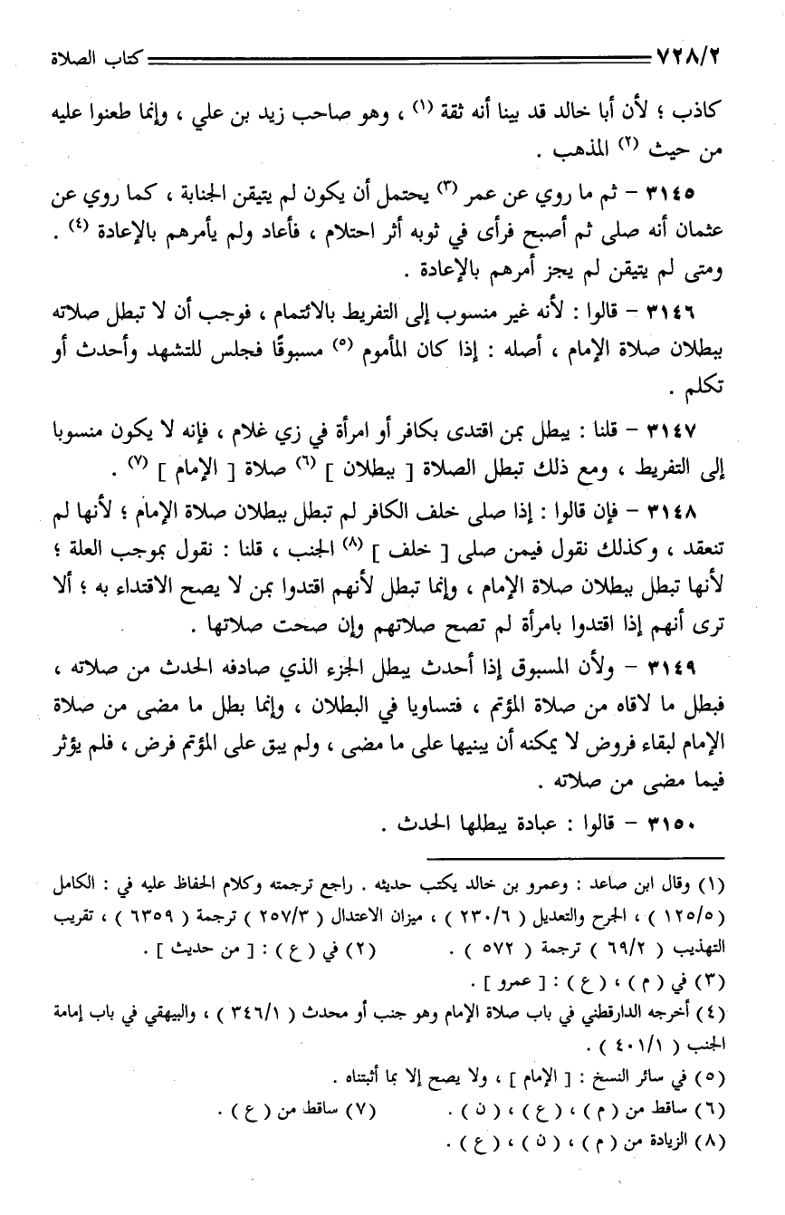 3146 - قالوا: لأنه غير منسوب إلى التفريط بالائتمام، فوجب أن لا تبطل صلاته ببطلان صلاة الإمام، أصله: إذا كان المأموم مسبوقا فجلس للتشهد وأحدث أو تكلم.