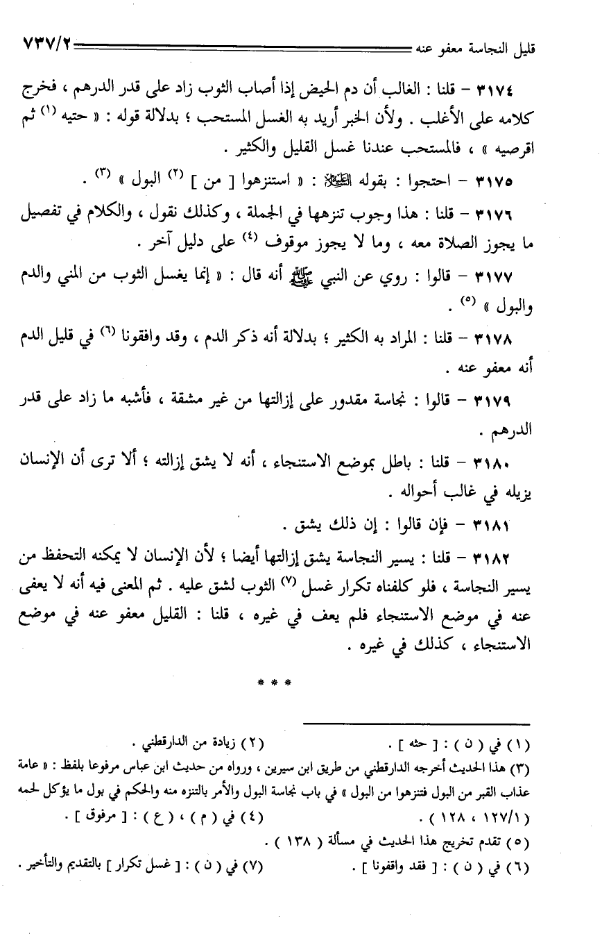 3175 - احتجوا: بقوله - عليه السلام -: "استنزهوا [من] البول".