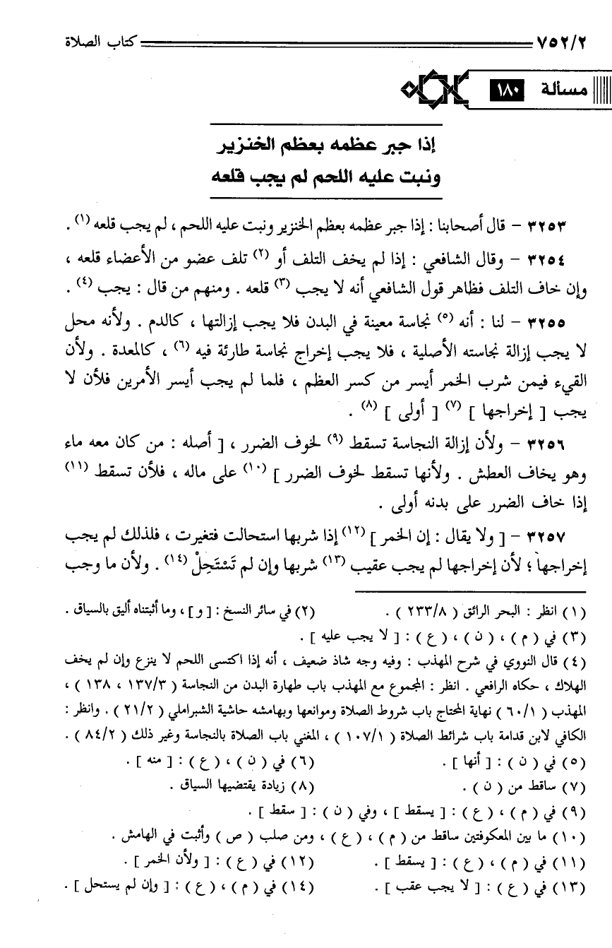 3257 - [ولا يقال: إن الخمر] إذا شربها استحالت فتغيرت، فلذلك لم يجب إخراجها؛ لأن إخراجها لم يجب عقيب شربها وإن لم تستحل. ولأن ما وجب