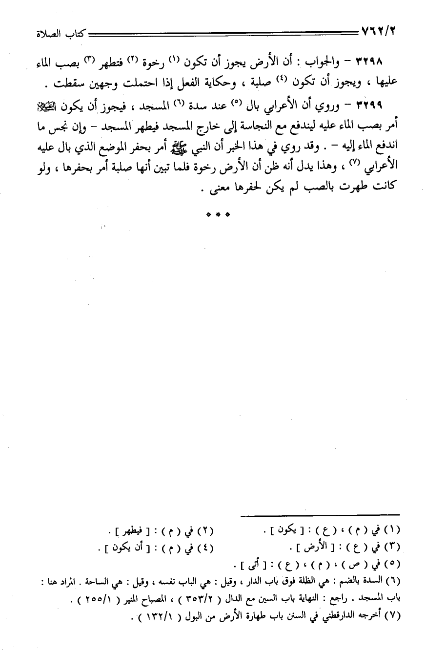 3298 - والجواب: أن الأرض يجوز أن تكون رخوة فتطهر بصب الماء عليها، ويجوز أن تكون صلبة، وحكاية الفعل إذا احتملت وجهين سقطت.