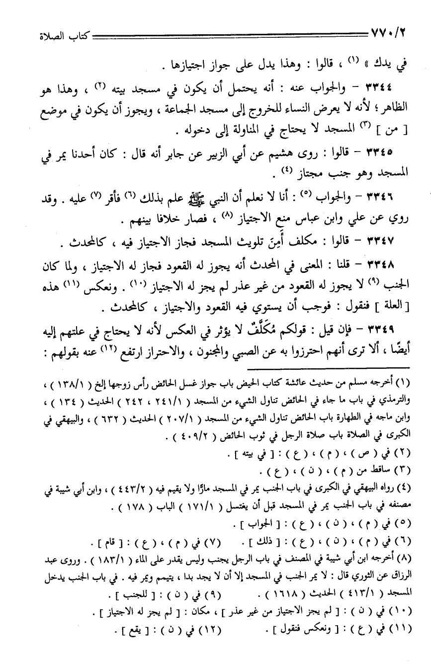 3346 - والجواب: أنا لا نعلم أن النبي - صلى الله عليه وسلم - علم بذلك فأقر عليه. وقد روي عن علي وابن عباس منع الاجتياز، فصار خلافا بينهم.