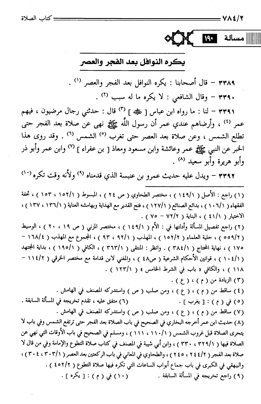 3389 - قال أصحابنا: يكره النوافل بعد الفجر والعصر.