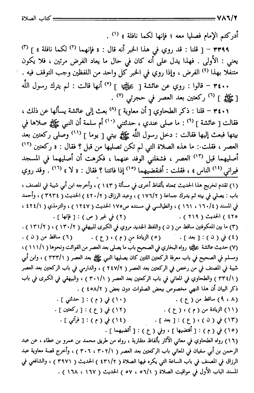 3400 - قالوا: روي عن عائشة [رضي الله عنها] أنها قالت: لم يترك رسول الله [- صلى الله عليه وسلم -] ركعتين بعد العصر في حجرتي.