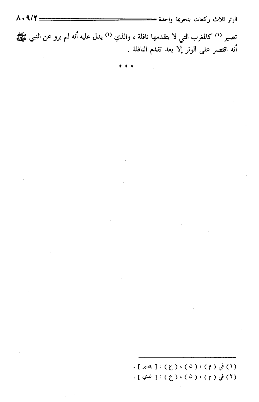 تصير كالمغرب التي لا يتقدمها نافلة، والذي يدل عليه أنه لم يرو عن النبي - صلى الله عليه وسلم - أنه اقتصر على الوتر إلا بعد تقدم النافلة.