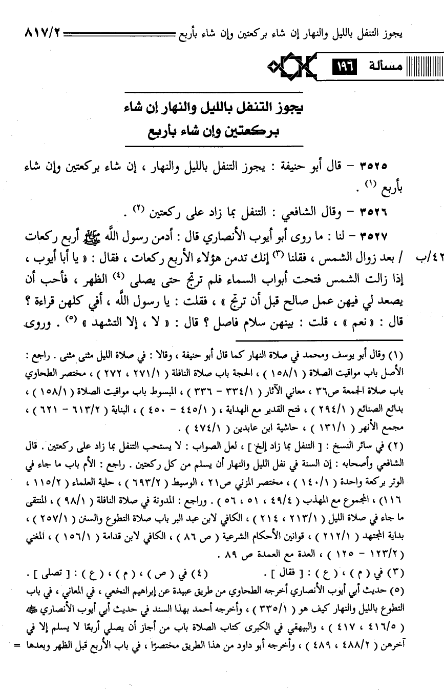 3525 - قال أبو حنيفة: يجوز التنفل بالليل والنهار، إن شاء بركعتين وإن شاء بأربع.