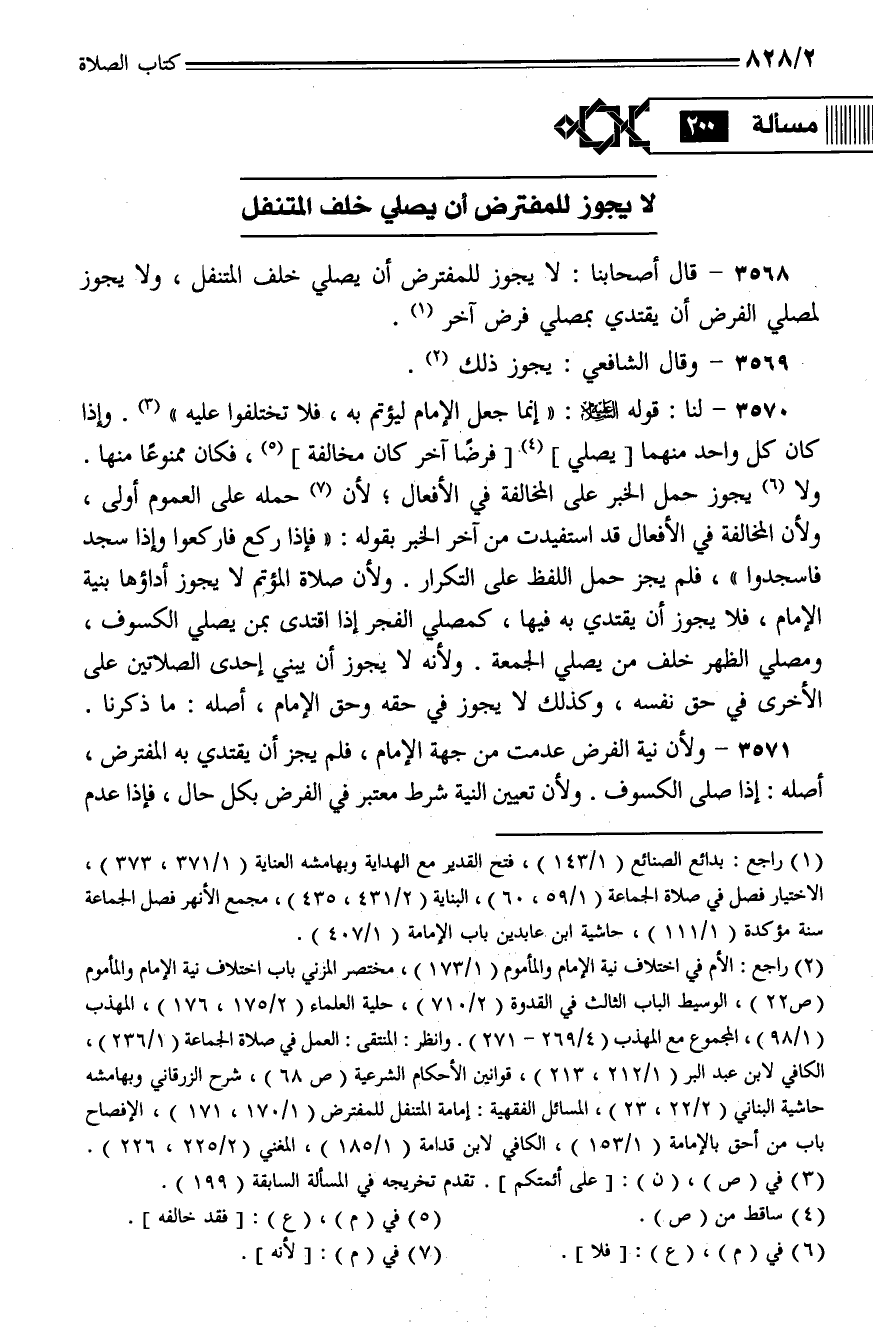 3568 - قال أصحابنا: لا يجوز للمفترض أن يصلي خلف المتنفل، ولا يجوز لمصلي الفرض أن يقتدي بمصلي فرض آخر.