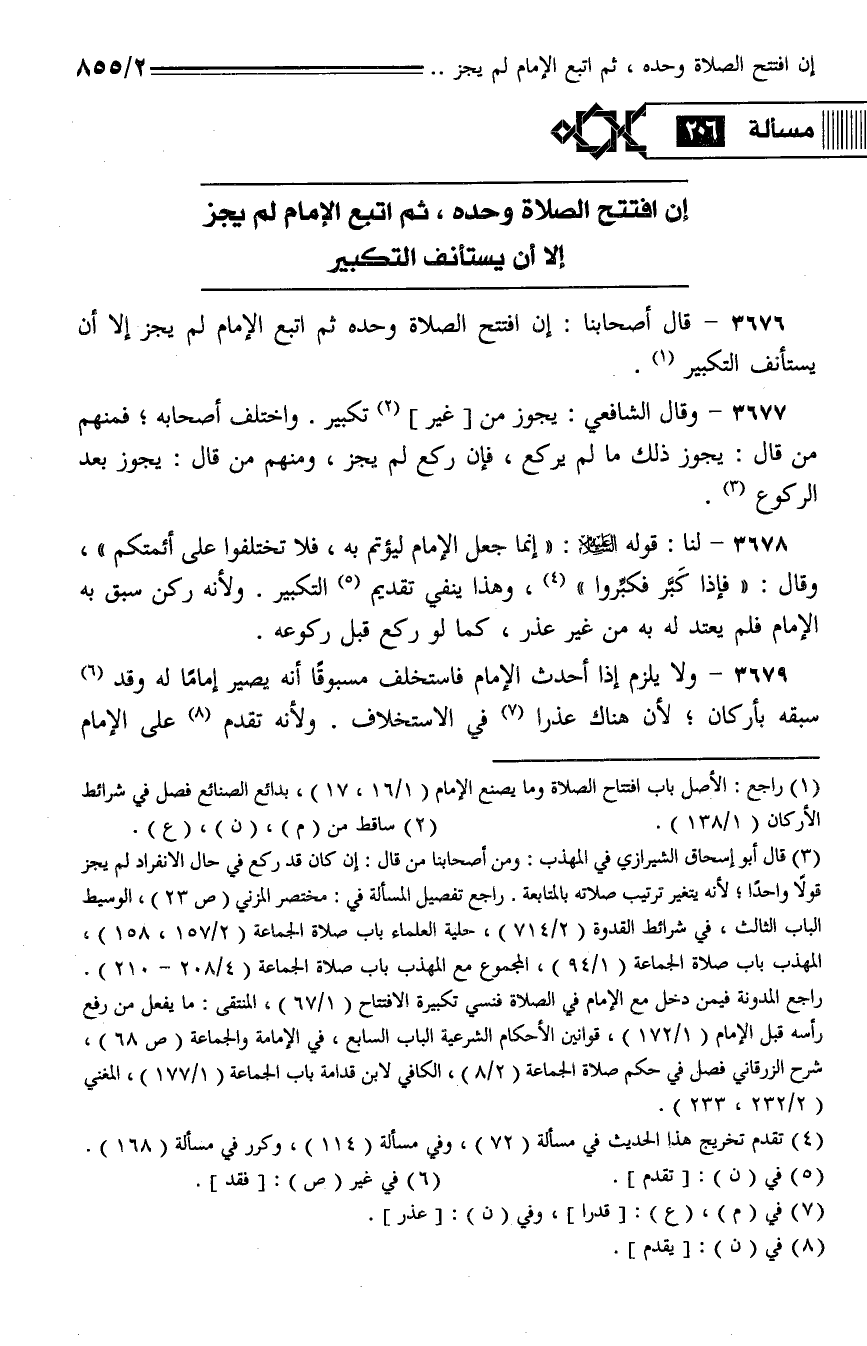 3676 - قال أصحابنا: إن افتتح الصلاة وحده ثم اتبع الإمام لم يجز إلا أن يستأنف التكبير.