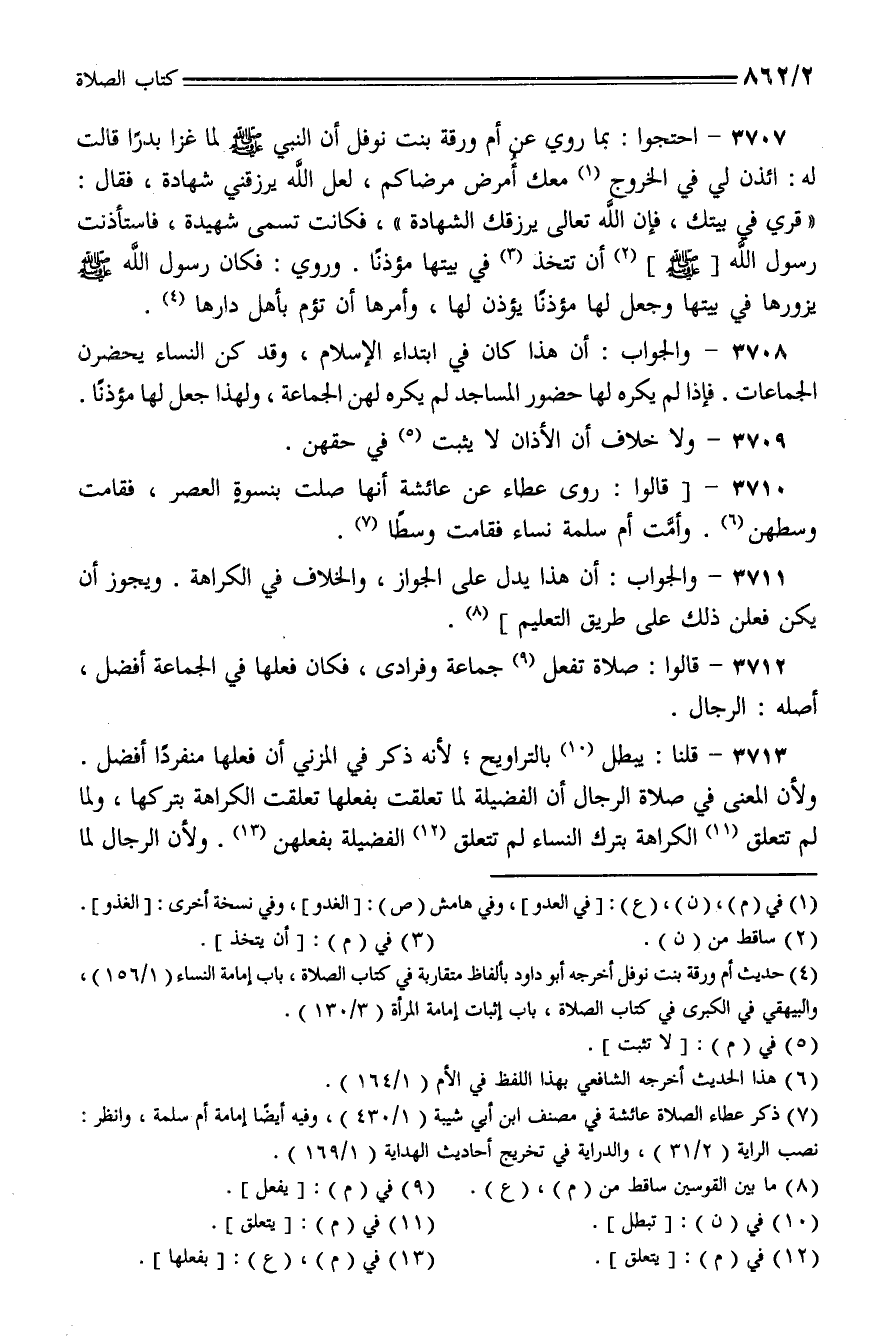 3708 - والجواب: أن هذا كان في ابتداء الإسلام، وقد كن النساء يحضرن الجماعات. فإذا لم يكره لها حضور المساجد لم يكره لهن الجماعة، ولهذا جعل لها مؤذنا.