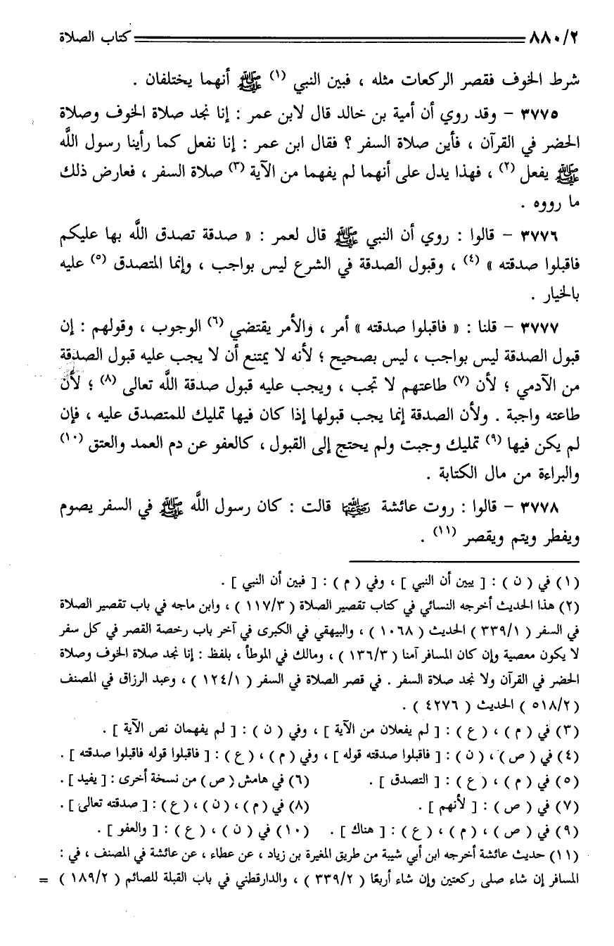 3775 - وقد روي أن أمية بن خالد قال لابن عمر: إنا نجد صلاة الخوف وصلاة الحضر في القرآن، فأين صلاة السفر؟ فقال ابن عمر: إنا نفعل كما رأينا رسول الله - صلى الله عليه وسلم - يفعل، فهذا يدل على أنهما لم يفهما من الآية صلاة السفر، فعارض ذلك ما رووه.