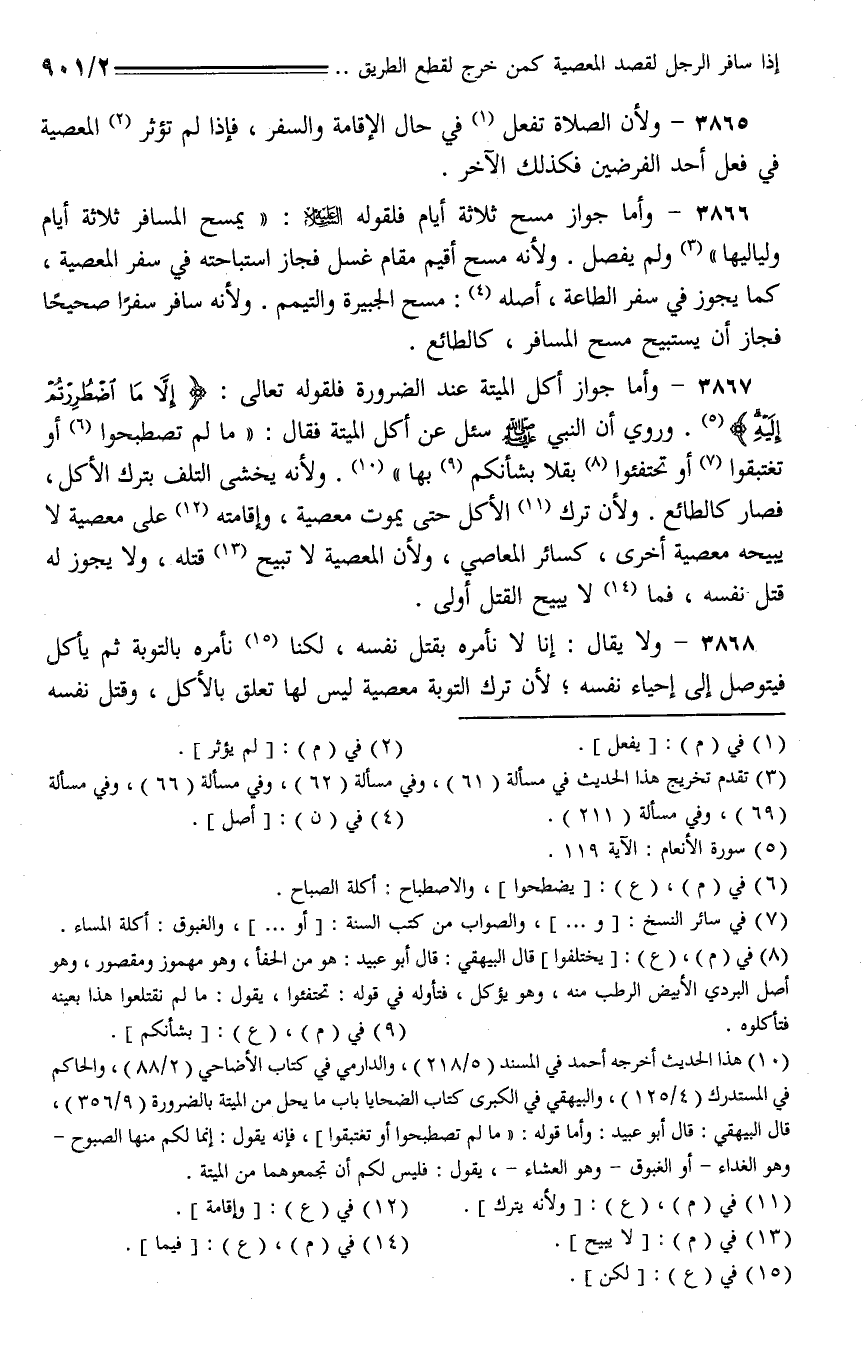 3868 - ولا يقال: إنا لا نأمره بقتل نفسه، لكنا نأمره بالتوبة ثم يأكل فيتوصل إلى إحياء نفسه؛ لأن ترك التوبة معصية ليس لها تعلق بالأكل، وقتل نفسه