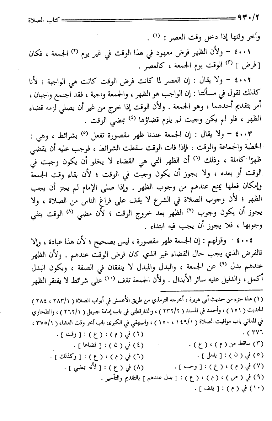 4001 - ولأن الظهر فرض معهود في هذا الوقت في غير يوم الجمعة، فكان [فرض] الوقت يوم الجمعة، كالعصر.