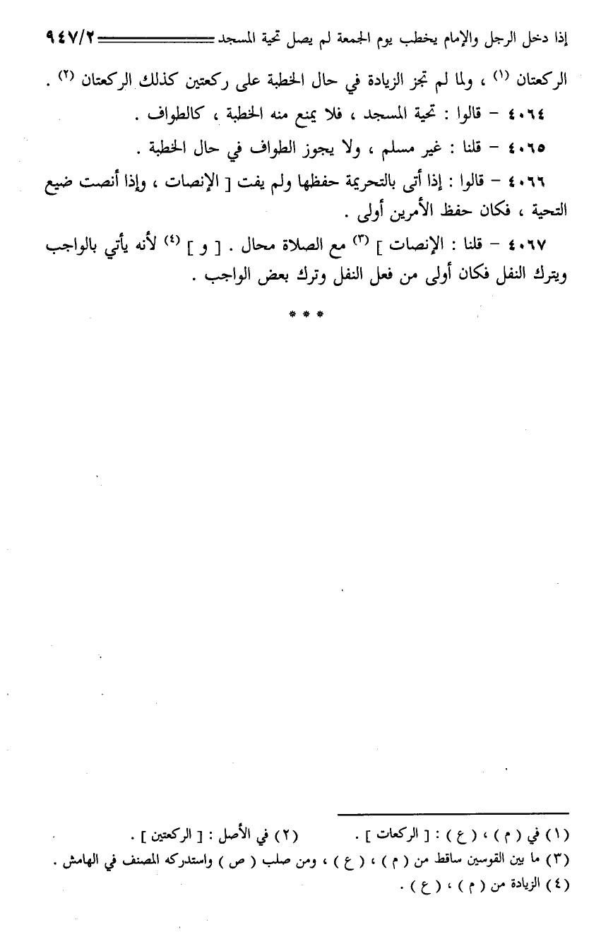 4065 - قلنا: غير مسلم، ولا يجوز الطواف في حال الخطبة.