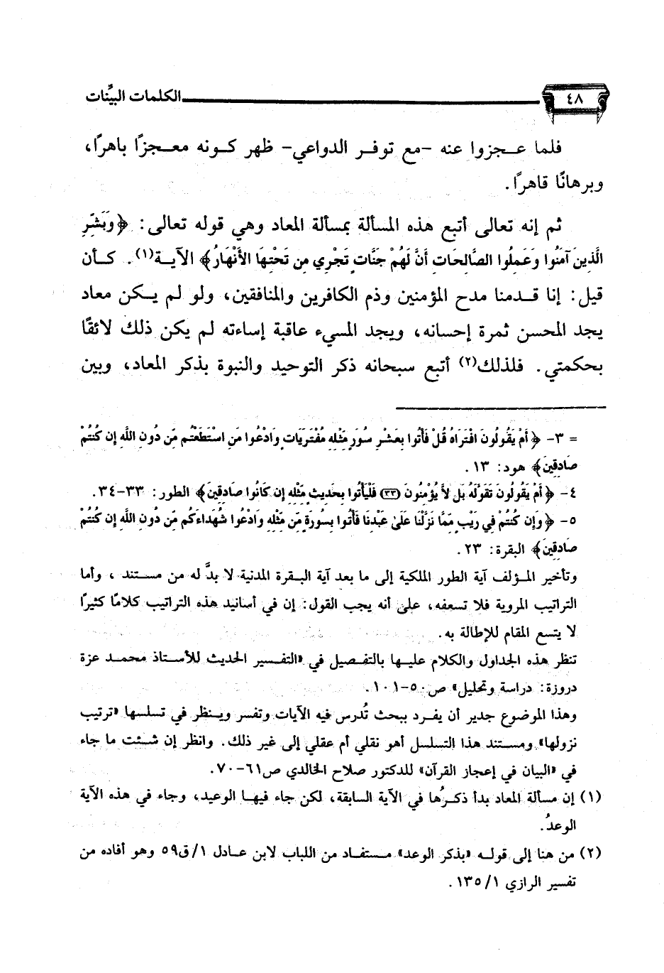 كتاب الكلمات البينات في قوله تعالى: {وبشر الذين آمنوا وعملوا الصالحات أن لهم جنات}