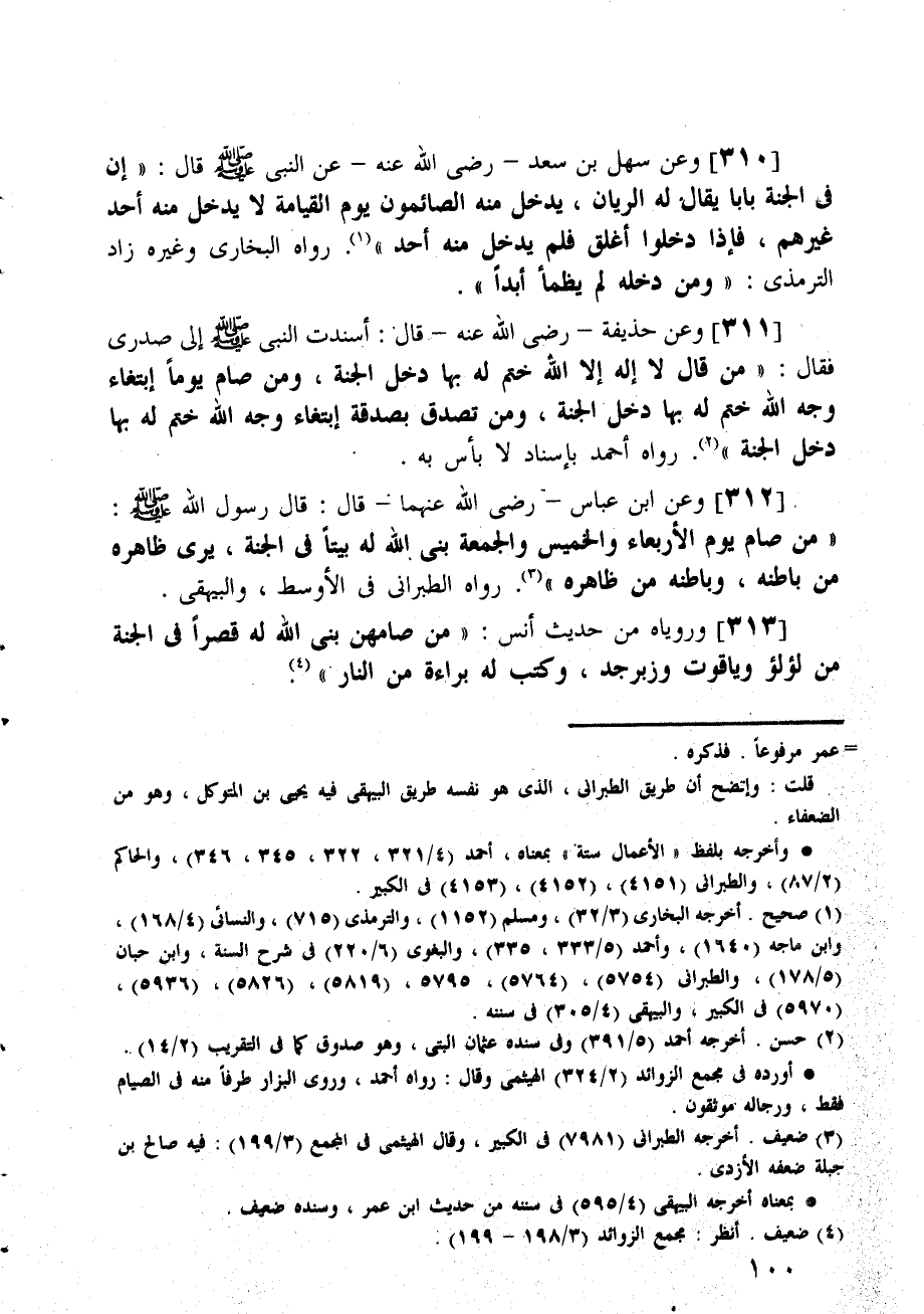 وعن سهل بن سعد - رضي الله عنه - عن النبي صلى الله عليه وسلم قال: (إن في الجنة بابا يقال له الريان، يدخل منه الصائمون يوم القيامة لا يدخل منه أحد غيرهم، فإذا دخلوا أغلق فلم يدخل منه أحد) . رواه البخاري وغيره زاد الترمذي: (ومن دخله لم يظمأ أبدا) .
