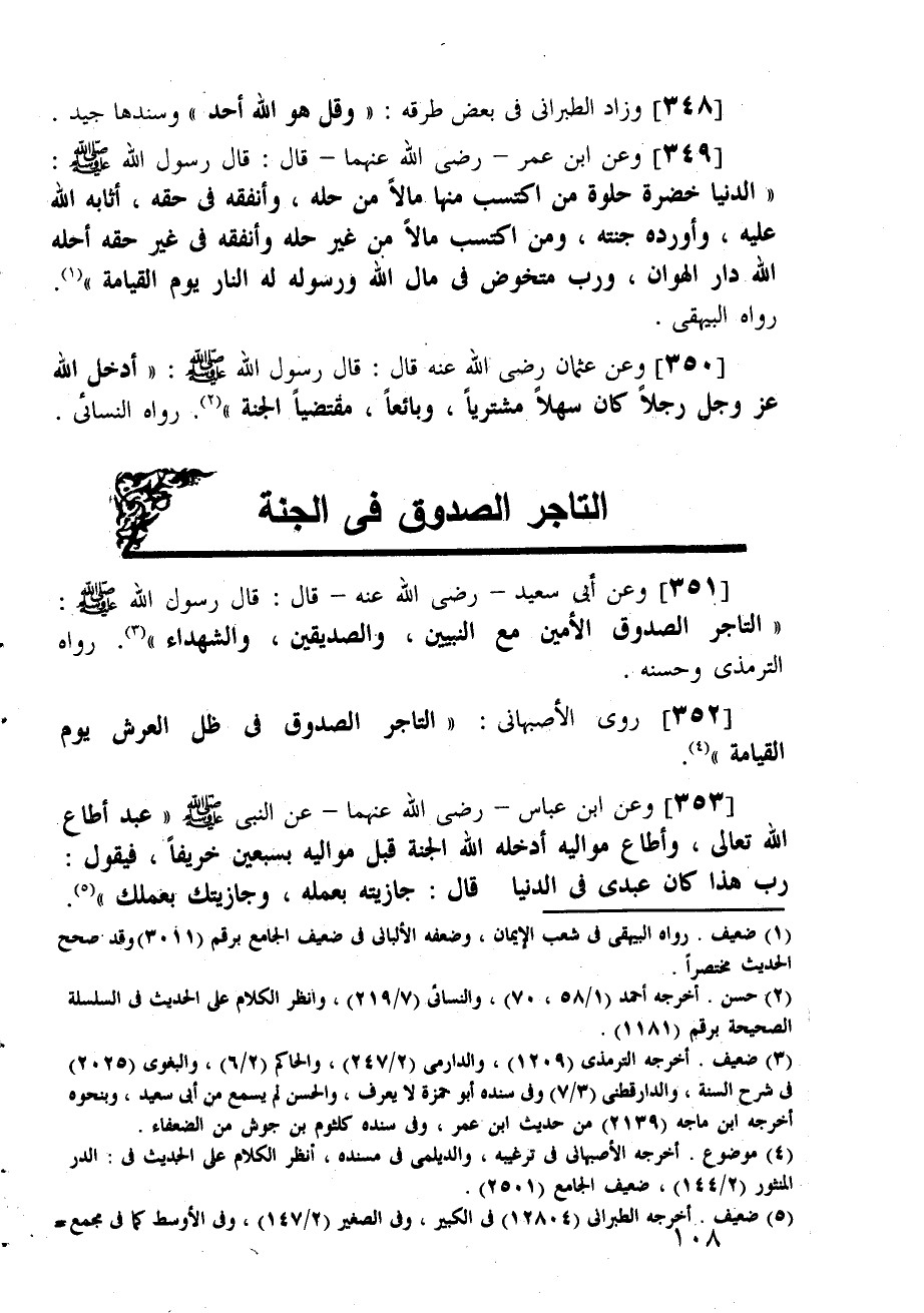 روى الأصبهاني: (التاجر الصدوق في ظل العرش يوم القيامة) .