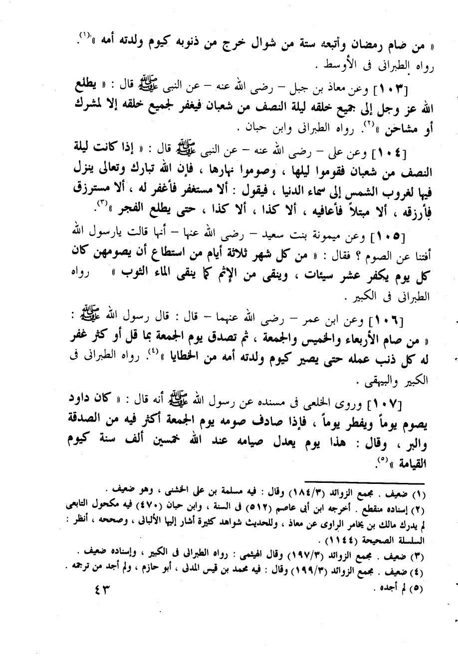 (من صام رمضان وابتعه ستة من شوال خرج من ذنوبه كيوم ولدته أمه) . رواه الطبراني في الأوسط.