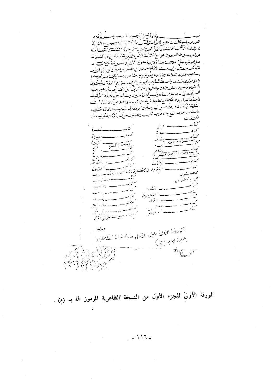 الورقة الأولى للجزء الأول من النسخة الظاهرية المرموز لها بـ (م).