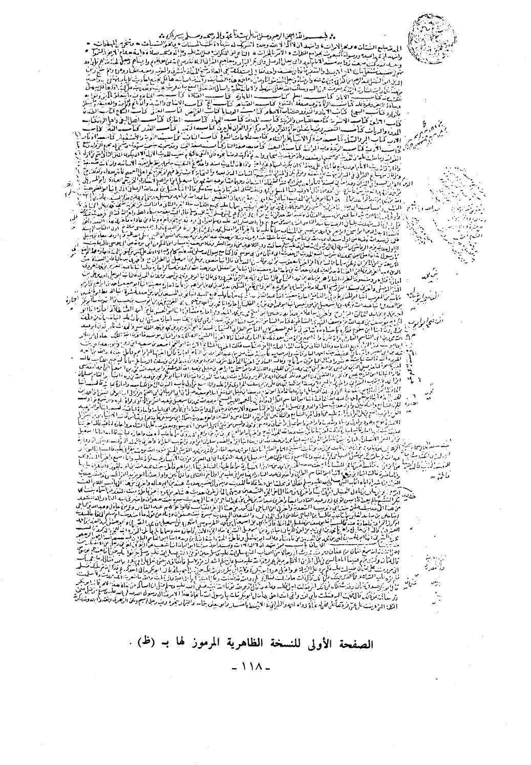 الصفحة الأولى للنسخة الظاهرية المرموز لها بـ (ظ).