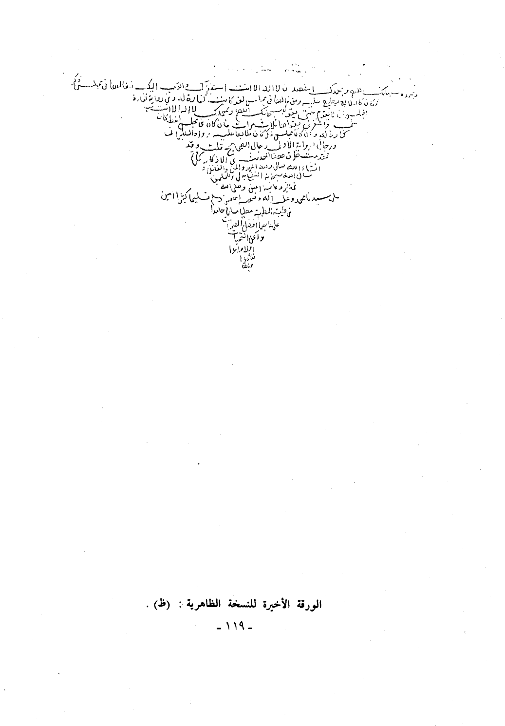 الورقة الأخيرة للنسخة الظاهرية: (ظ).