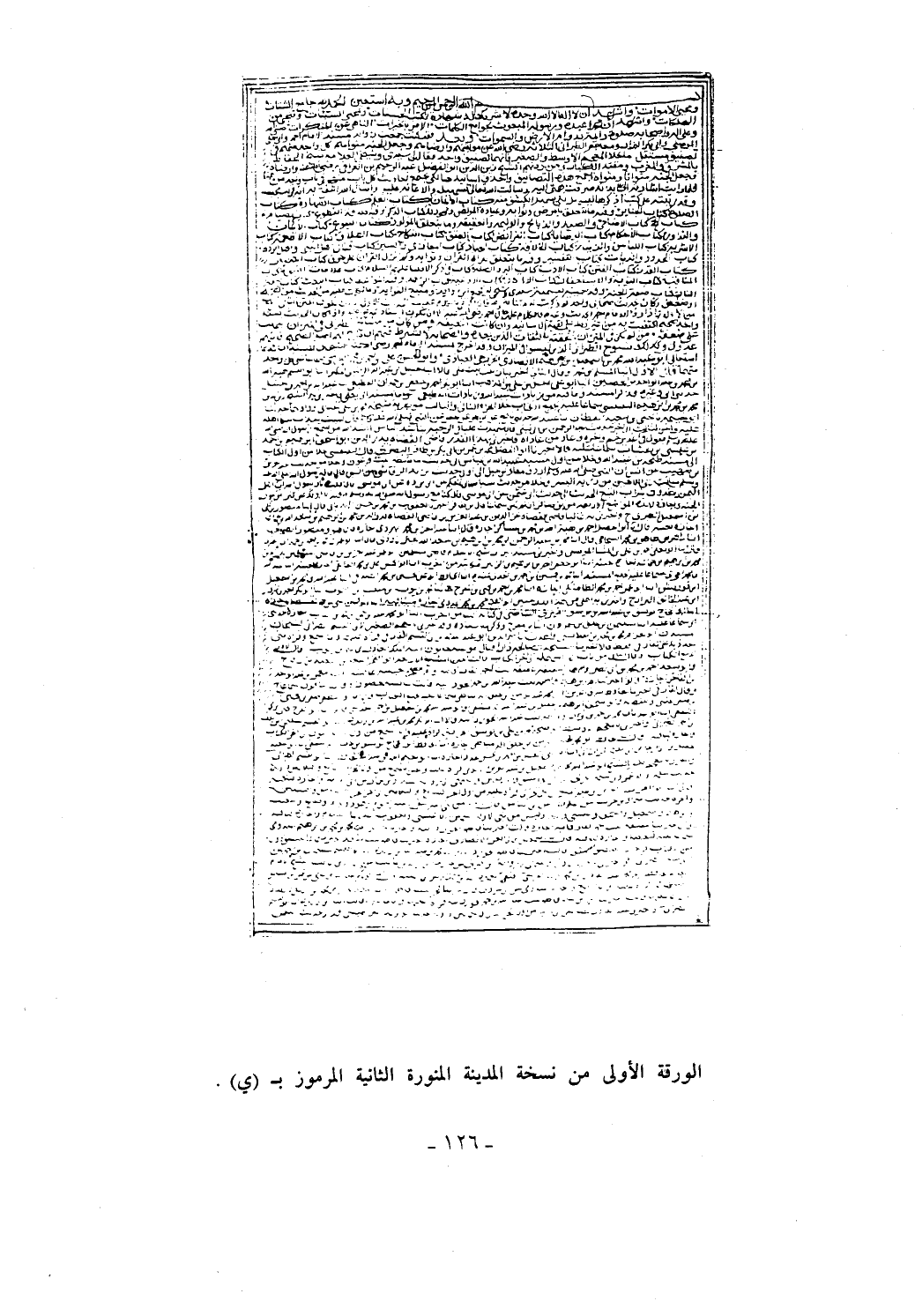 الورقة الأولى من نسخة المدينة المنورة الثانية المرموز بـ (ي).