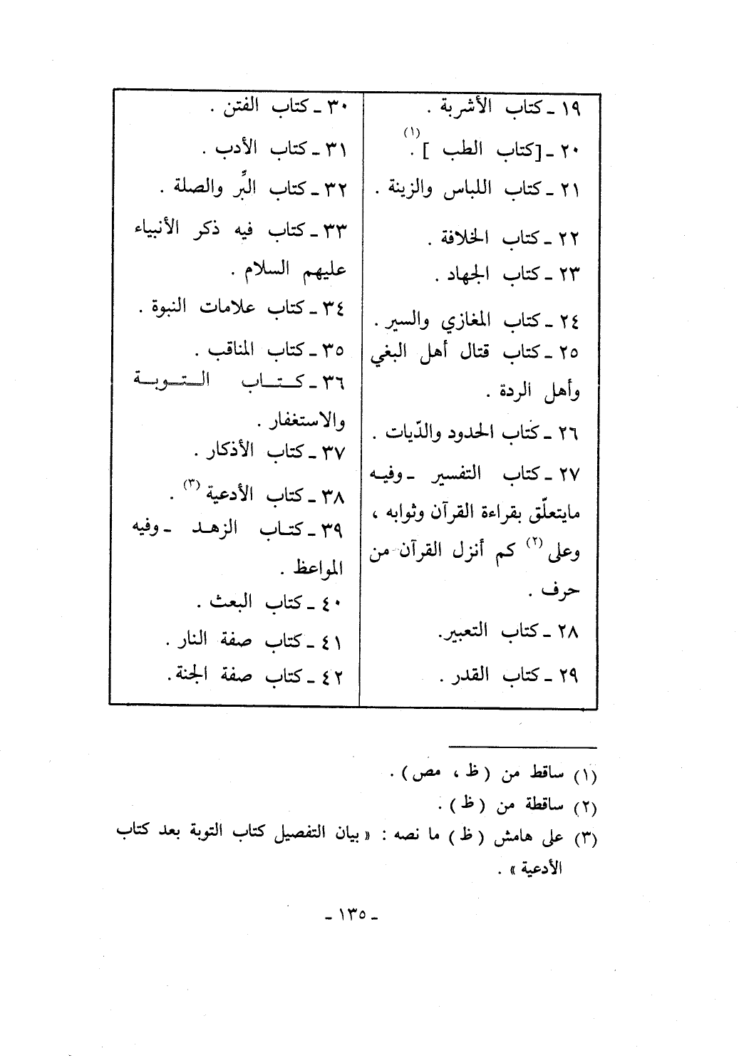 (¬3) على هامش (ظ) ما نصه: "بيان التفصيل كتاب التوبة بعد كتاب الأدعية".
