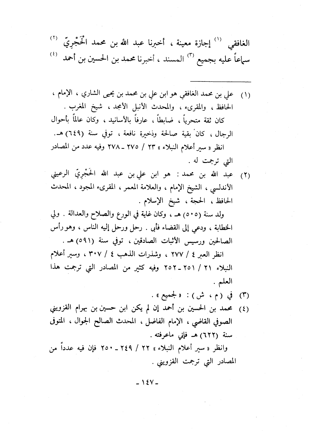 (¬4) محمد بن الحسن بن أحمد إن لم يكن ابن حسن بن بهرام القزويني الصوفي القاضي، الإمام الفاضل، المحدث الصالح الجوال، المتوفى سنة (622) هـ فإني ما عرفته.