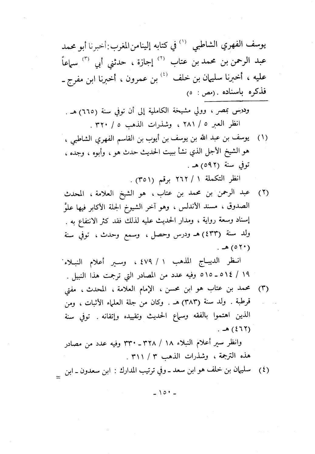 يوسف الفهري الشاطبي (¬1) في كتابه إلينا من المغرب: أخبرنا أبو محمد عبد الرحمن بن محمد بن عتاب (¬2) إجازة، حدثني أبي (¬3) سماعاً عليه، أخبرنا سليمان بن خلف (¬4) بن عمرون، أخبرنا ابن مفرج - فذكره بإسناده. (مص: 5)