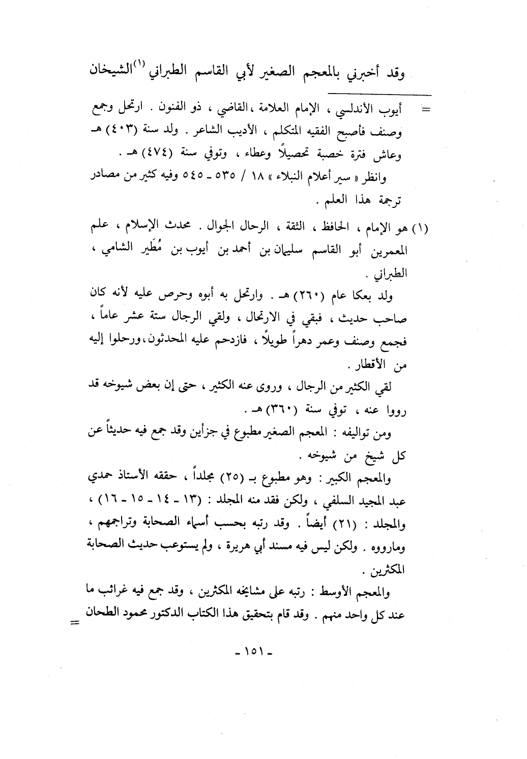 (¬1) هو الإمام، الحافظ، الثقة، الرحال الجوال. محدث الإسلام، علم المعمرين أبو القاسم سليمان بن أحمد بن أيوب بن مُطَير الشامي، الطبراني.