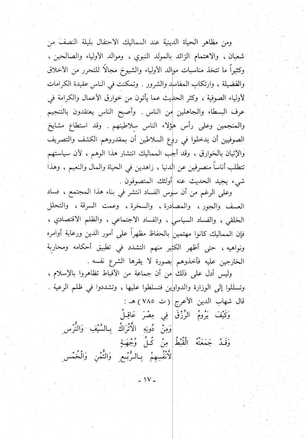 وَكَيْفَ يَرُومُ الرِّزْقَ فِي مِصْرَ عَاقِلٌ ... وَمِنْ دُونِهِ الأتْرَاكُ بِالسَّيْفِ وَالتُّرْسِ