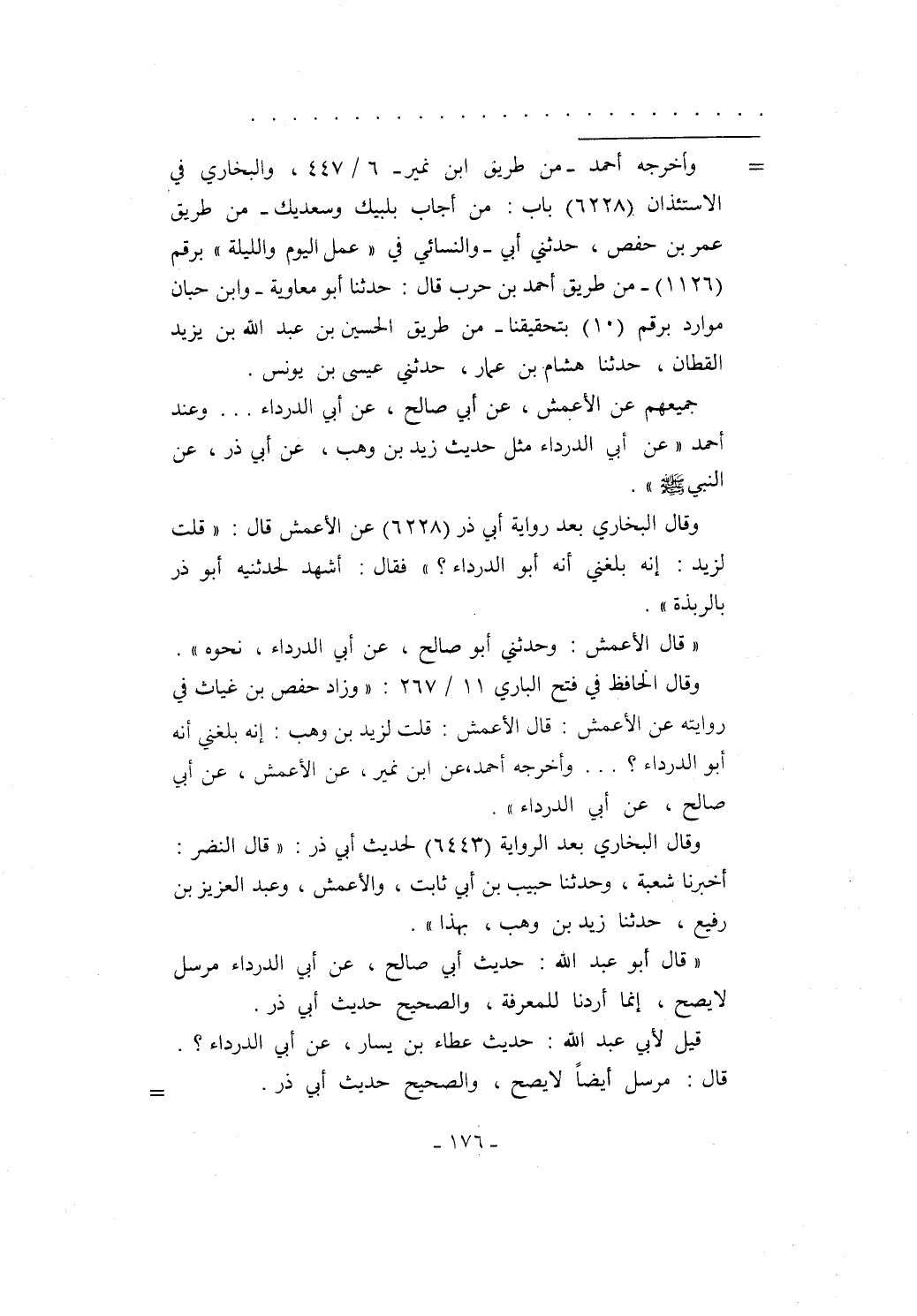 جميعهم عن الأعمش، عن أبي صالح، عن أبي الدرداء ... وعند أحمد "عن أبي الدرداء مثل حديث زيد بن وهب، عن أبي ذر، عن النبي - صلى الله عليه وسلم -".
