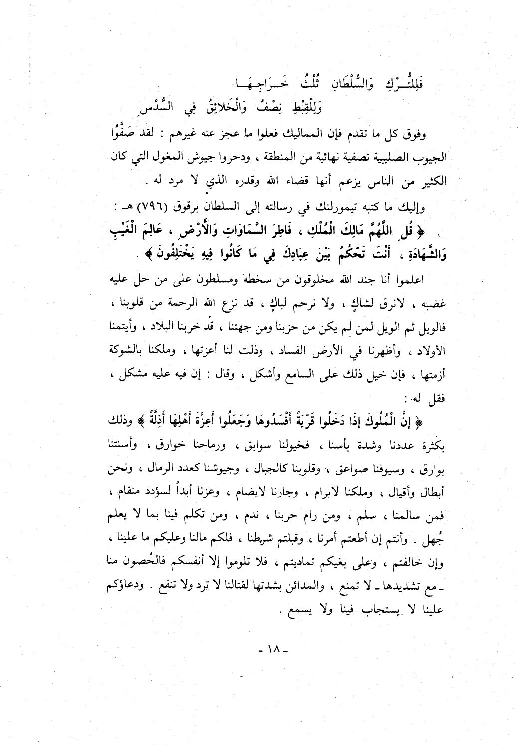 وإليك ما كتبه تيمورلنك في رسالته إلى السلطان برقوق (796) هـ: