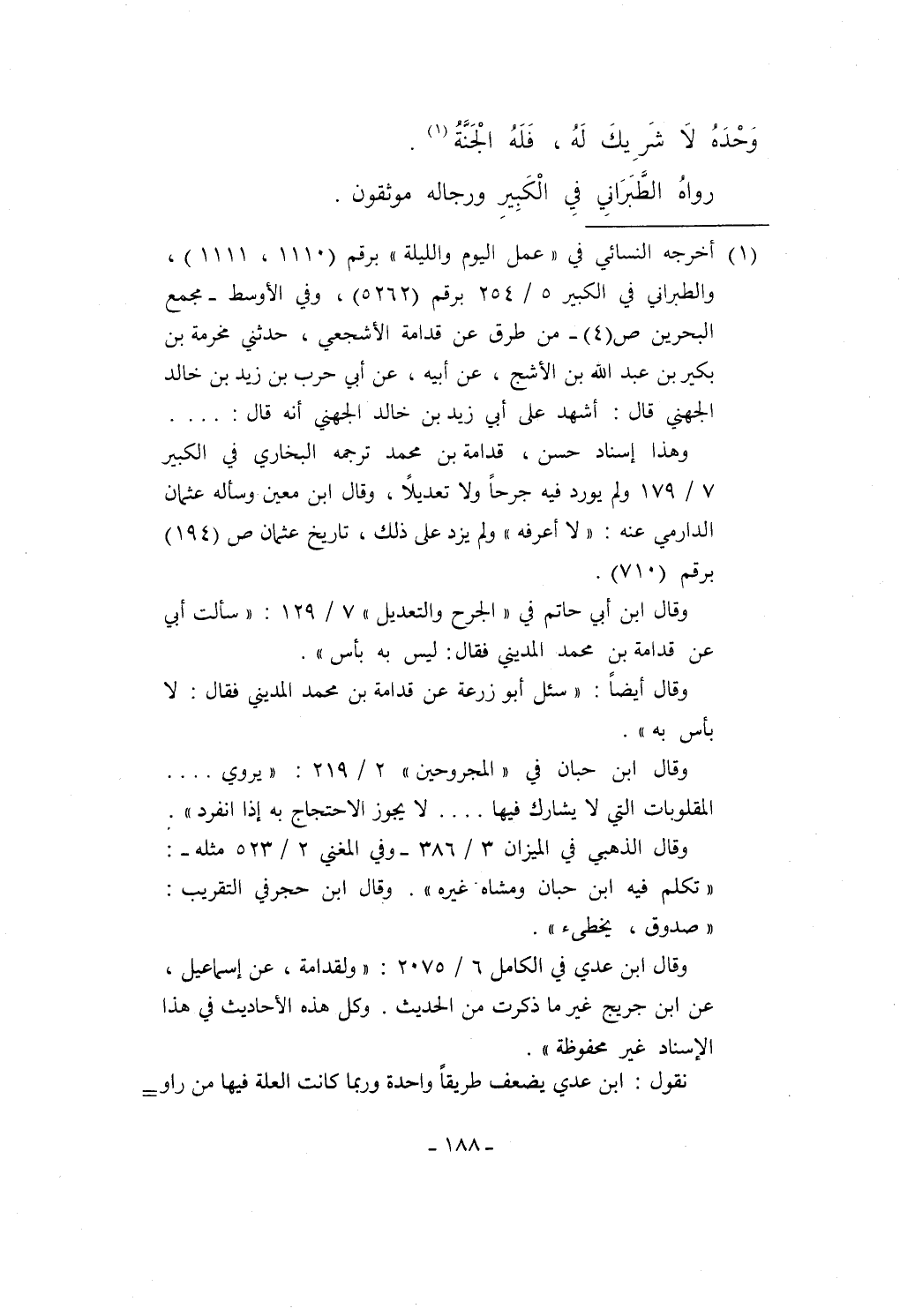 وقال أيضاً: "سئل أبو زرعة عن قدامة بن محمد المديني فقال: لا بأس به".